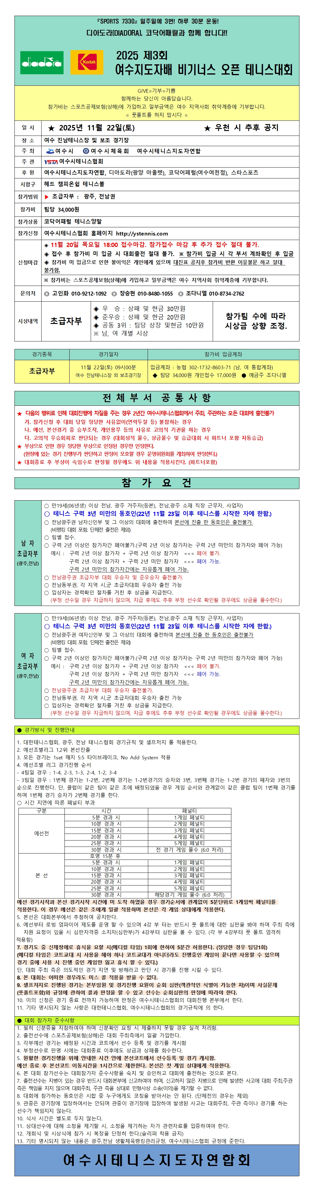 제3회 여수지도자배 비기너스오픈 테니스대회